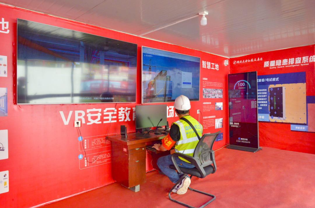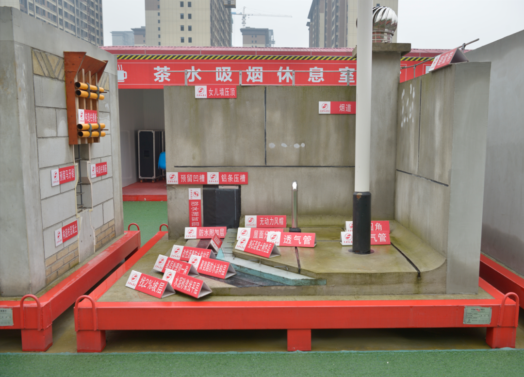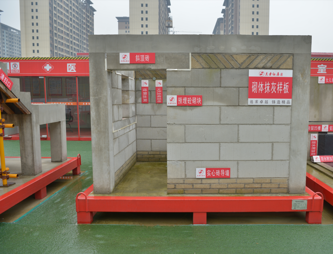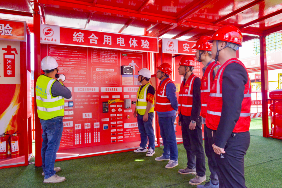四、嚴(yán)格安全標(biāo)準(zhǔn)化管理實(shí)踐,全面提升安全生產(chǎn)全過程管理。項(xiàng)目嚴(yán)格執(zhí)行公司安全生產(chǎn)標(biāo)準(zhǔn)化圖集工作要求,創(chuàng)建“高標(biāo)準(zhǔn)、高效率、高起點(diǎn)”的安全文明施工現(xiàn)場,現(xiàn)場材料嚴(yán)格按總平面分類、分區(qū)規(guī)范布置整齊、標(biāo)識(shí)清晰,全面推廣工具化、標(biāo)準(zhǔn)化設(shè)施,項(xiàng)目部通過班前教育講臺(tái)、宣傳欄、VR安全體驗(yàn)館等多種形式開展安全教育,切實(shí)提高施工人員的安全責(zé)任意識(shí)。項(xiàng)目還設(shè)置了移動(dòng)樣板區(qū),通過將標(biāo)準(zhǔn)化施工流程應(yīng)用到實(shí)體交付工程中,做到施工有參照,交付有標(biāo)準(zhǔn)。