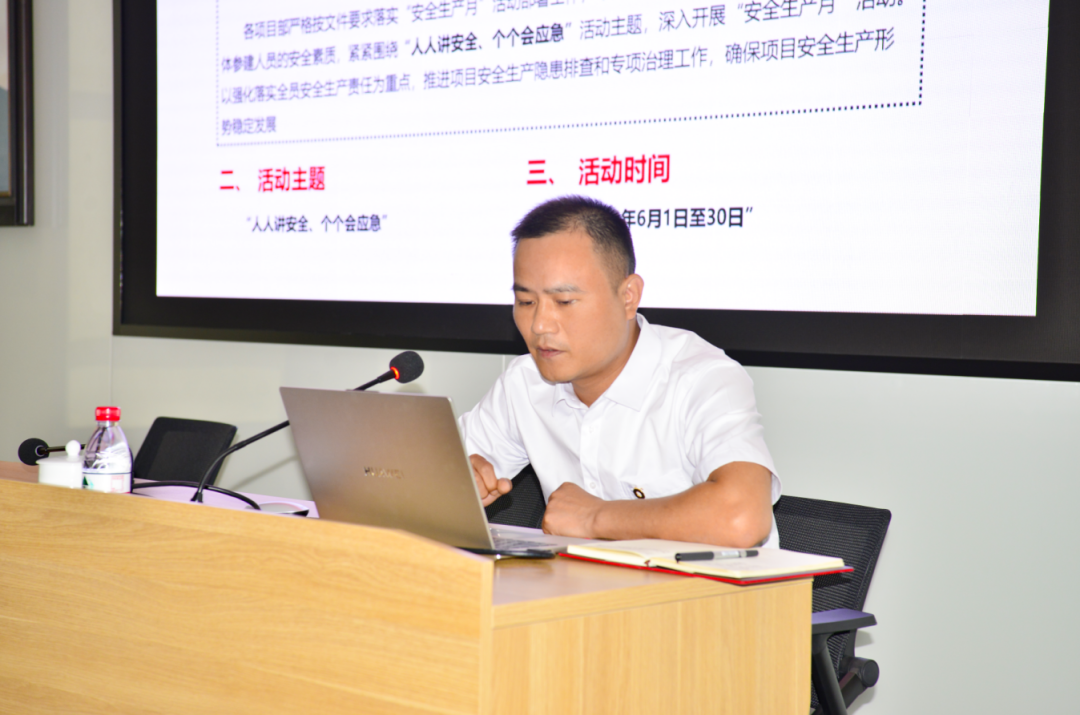 今年6月是全國第22個(gè)安全生產(chǎn)月,主題是“人人講安全,個(gè)個(gè)會(huì)應(yīng)急”,大家通過觀看安全生產(chǎn)月警示視頻,深刻反思、消除隱患,進(jìn)一步加強(qiáng)安全責(zé)任意識(shí)。會(huì)議對(duì)上半年度質(zhì)量安全情況進(jìn)行回顧,對(duì)安全生產(chǎn)優(yōu)秀項(xiàng)目及標(biāo)兵進(jìn)行表彰,同時(shí)深刻分析當(dāng)前質(zhì)安管理工作中遇到的問題和難點(diǎn),進(jìn)一步統(tǒng)一思想、提高認(rèn)識(shí)、理清思路,全面推動(dòng)集團(tuán)各項(xiàng)目安全生產(chǎn)再上新臺(tái)階。