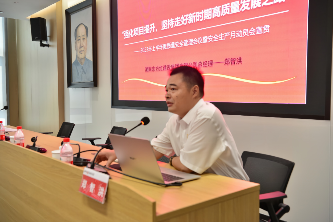 6月18日,湖南東方紅集團(tuán)隆重舉行2023年度安全生產(chǎn)月宣貫暨半年度質(zhì)量安全工作會(huì)議,集團(tuán)總經(jīng)理雷迅,集團(tuán)副總經(jīng)理、建筑公司總經(jīng)理鄭智洪,建筑公司副總經(jīng)理劉敏等領(lǐng)導(dǎo)以及100多名各級(jí)管理人員、項(xiàng)目負(fù)責(zé)人、安全員參加了會(huì)議,會(huì)議由建筑公司常務(wù)副總經(jīng)理李時(shí)雨主持。