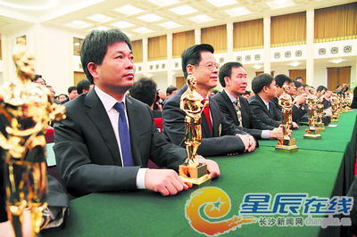 東方紅建設集團董事長雷希文(左一)捧回了這項中國建筑業(yè)最高獎項。本報訊(記者 彭紅丹 章盛莉)由中國住房和城鄉(xiāng)建設部、中國建筑業(yè)協(xié)會主辦的2011年度中國建設工程魯班...