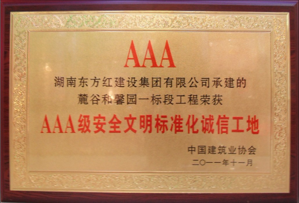 麓谷和馨園A區(qū)一標段工程榮獲“全國AAA級安全文明標準化誠信工地”稱號