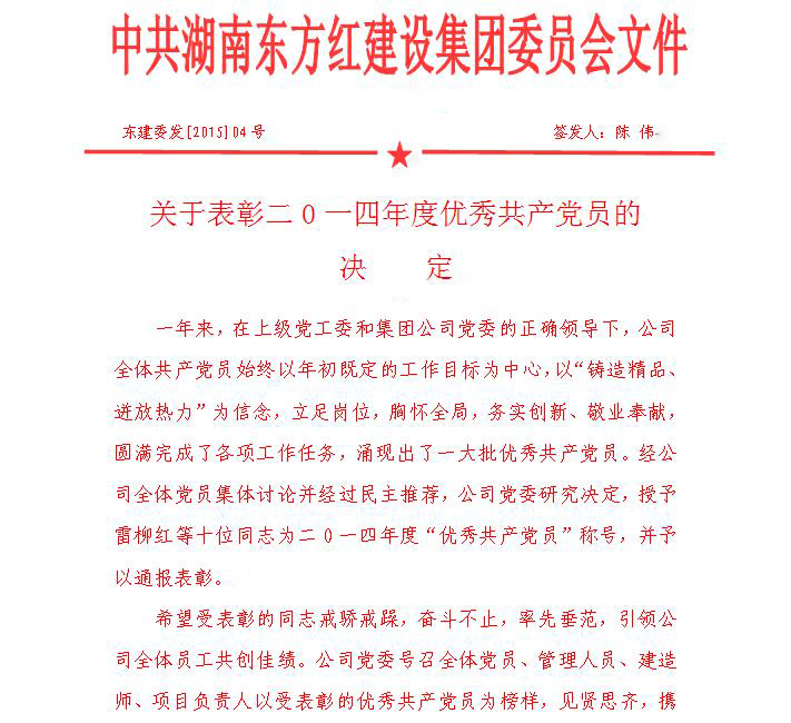 關(guān)于表彰二0一四年度優(yōu)秀共產(chǎn)黨員的決定