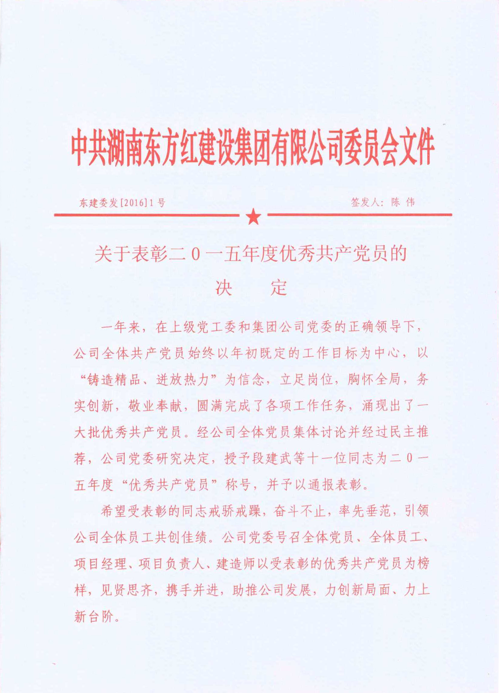 關(guān)于表彰二0一五年度優(yōu)秀共產(chǎn)黨員的決定