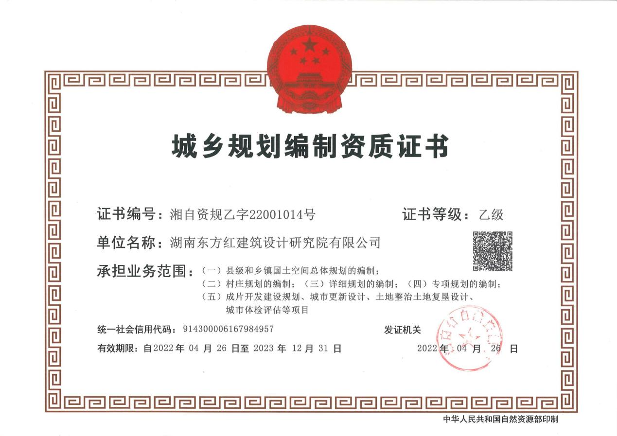 (2)城鄉(xiāng)規(guī)劃編制資質(zhì)證書乙級(jí)